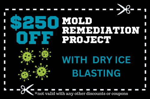 Dry ice blasting for mold remediation and removal is the newest and most environmentally friendly way to remove mold from your home or business. If you find yourself in a situation where an expert has alerted you to mold, we are here to help – without chemicals or materials that can affect your home, family, or pets! Because dry ice blasting does not leave behind any abrasive or chemicals or secondary waste, this method for removing mold is becoming a new favorite for both homeowners and businesses.